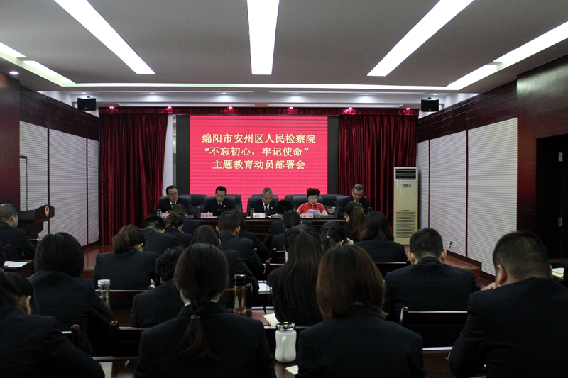 为深入学习贯彻习近平总书记在中央“不忘初心、牢记使命”主题教育工作会议上的重要讲话精神,全面落实中央、省委、市委、区委和市检察院关于“不忘初心、牢记使命”主题教育的决策部署,9月20日上午,365bet中文版app_365bet官网体育投注_365彩票娱乐平台安州区人民检察院召开“不忘初心、牢记使命”主题教育动员部署会。院党组副书记、副检察长张绍平主持会议,院党组书记、检察长景中强作动员讲话,区委“不忘初心、牢记使命”主题教育第二巡回指导组组长杨旭到会指导并讲话。