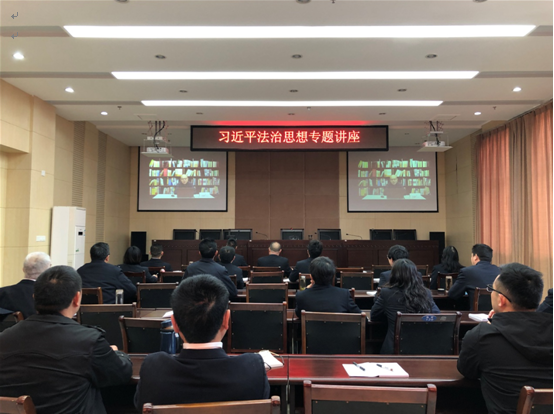为深入贯彻落实习近平法治思想,推动政法队伍教育整顿学习教育成果转化为思想成果和工作成果,近日,北川县检察院举办习近平法治思想专题讲座。党组书记、副检察长王良平以中国社会科学院学部委员、法学研究所研究员李林所写的《习近平法治思想的核心要义》文章为主要内容与大家做了沟通交流,对干警进一步学习领会习近平法治思想的深刻内涵和核心,运用其指导司法实践有很强的启发性。随后,组织全院干警一起观看了张震教授以“深学笃用习近平法治思想,全面推进依法治国”为题的专题讲座,张震教授从习近平法治思想的重大战略定位、对习近平法治思想“十一个坚持”的践行等几方面进行了深刻阐述,激励每一位党员干部有信心和力量迈进新时代踏上新征程。